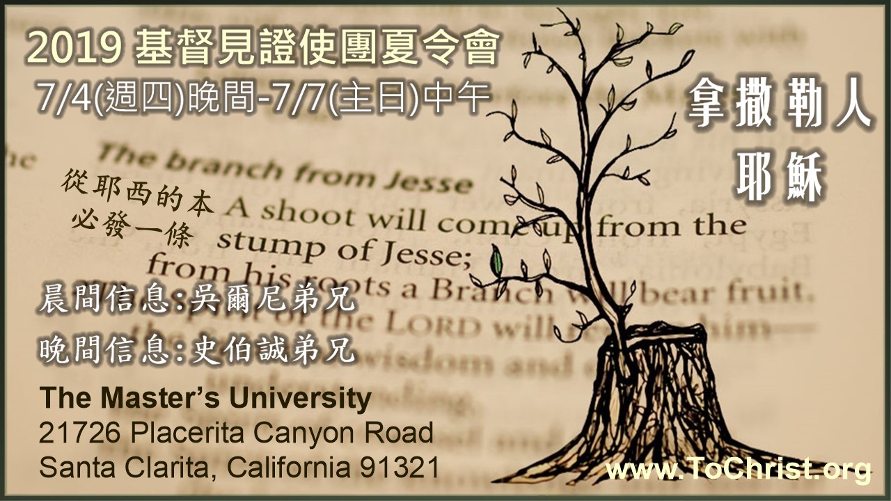 基督見證使團 2019夏令特會 七月四日至七月七日 |